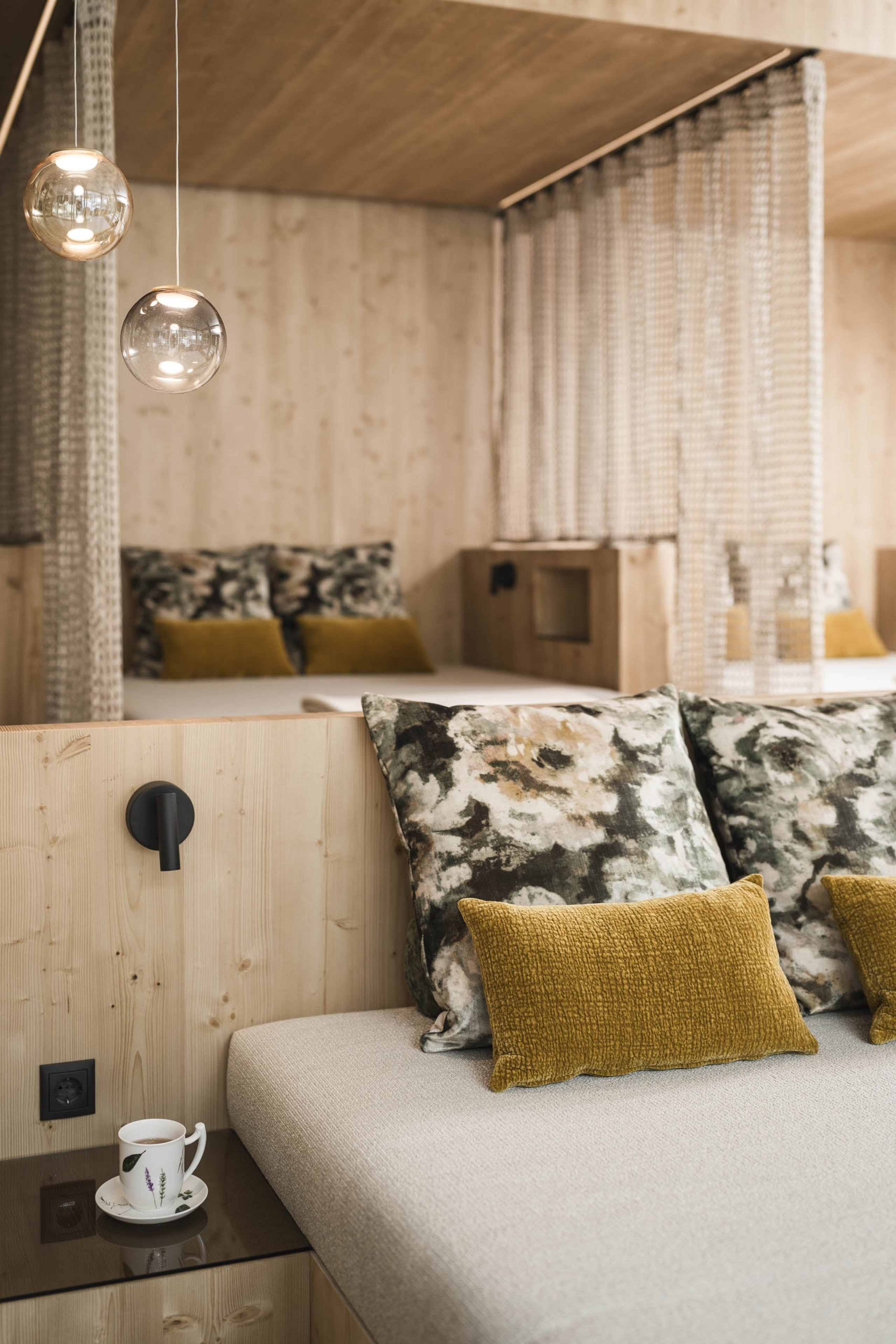 Für 2 - 4 Personen. Ausgestattet mit heimischen Fichten- oder Zirbenholz